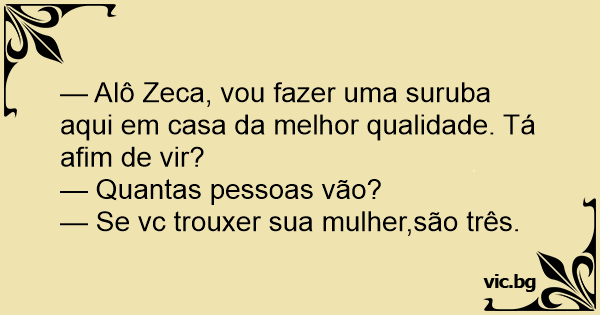 — Alô Zeca, vou fazer uma suruba aqui em casa da melhor qualidade. Tá afim de vir?
