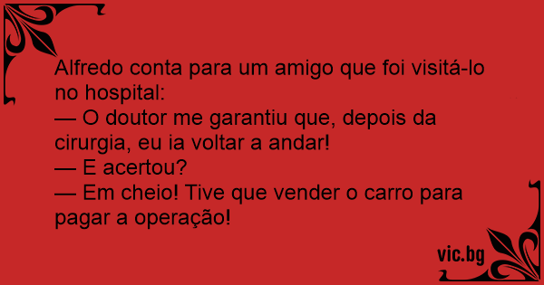 Alfredo conta para um amigo que foi visitá-lo no hospital: