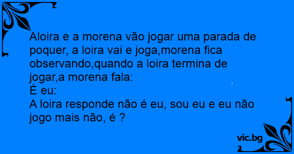Aloira e a morena vão jogar uma parada de poquer, a loira vai e joga,morena fiса observando,quando a loira termina de jogar,a morena fala: