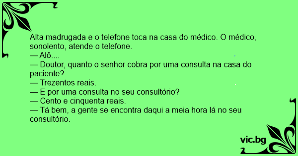 Alta madrugada e o telefone toca na casa do médico. O médico, sonolento, atende o telefone.
