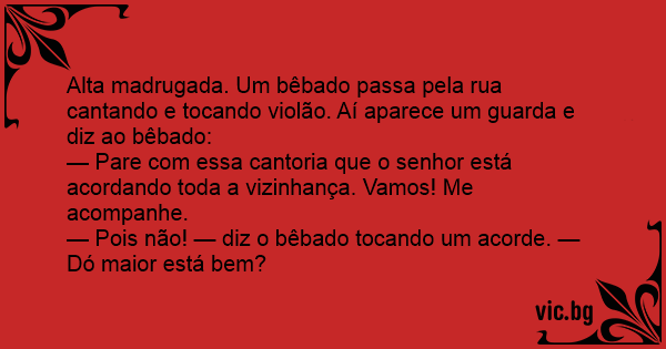 — Pois não! — diz o bêbado tocando um acorde. — Dó maior está bem?