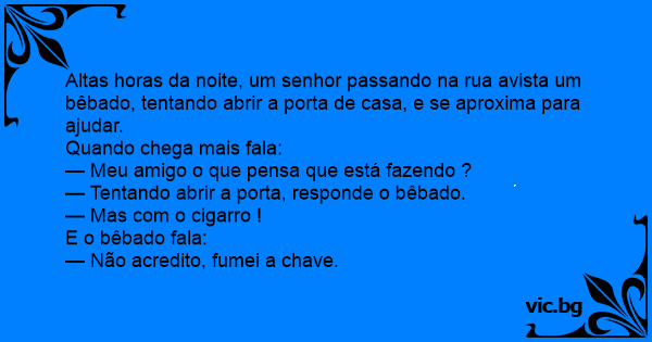 — Tentando abrir a porta, responde o bêbado.