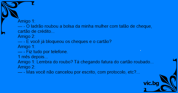 Amigo 1: Lembra do roubo? Tá chegando fatura do cartão roubado...