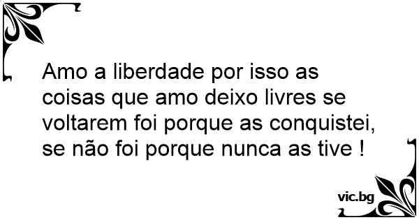 Amo a liberdade por isso as coisas que amo deixo livres se voltarem foi porque as conquistei, se não foi porque nunca as tive !