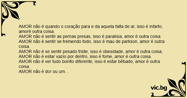 AMOR não é se sentir pesado triste, isso é obesidade, amor é outra coisa, AMOR não é estar vazio por dentro, isso é fome, amor é outra coisa.