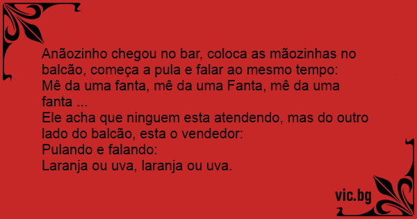 Anãozinho chegou no bar, coloca as mãozinhas no balcão, começa a pula e falar ao mesmo tempo: