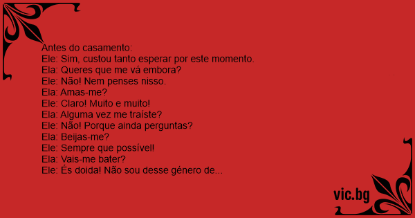Antes do casamento: Ele:...