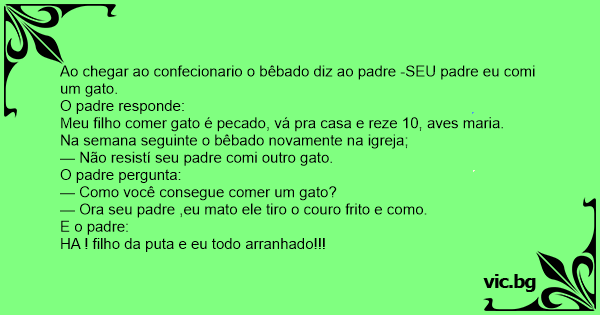 — Não resistí seu padre comi outro gato.