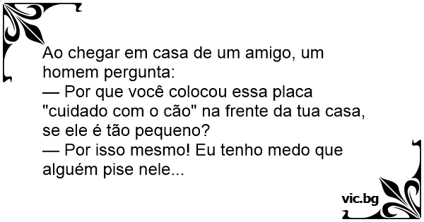 — Por que você colocou essa placa "cuidado com o cão" na frente da tua casa, se ele é tão pequeno?