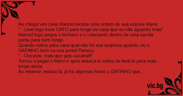Não adiantou. O GATO era bem mais esperto que o lusitano. Disse Maria, sua esposa que tanto in- ventou a situação: