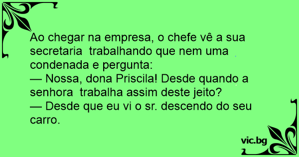 Ao chegar na empresa, o chefe vê a sua secretaria trabalhando que nem uma condenada e pergunta:
