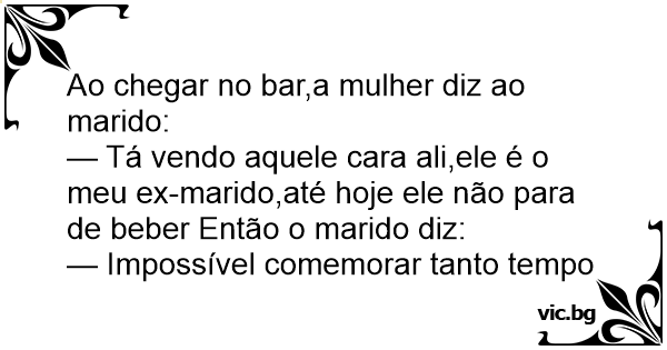 — Tá vendo aquele cara ali,ele é o meu ex-marido,até hoje ele não para de beber Então o marido diz: