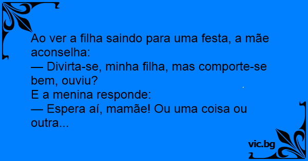 Ao ver a filha saindo para uma festa, a mãe aconselha:
