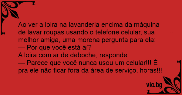 Ao ver a loira na lavanderia encima da máquina de lavar roupas usando o telefone celular, sua melhor amiga, uma morena pergunta para ela: