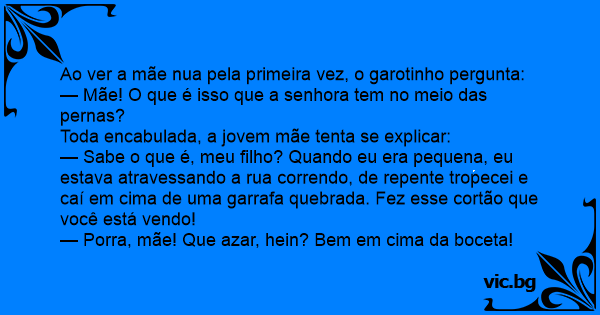 — Mãe! O que é isso que a senhora tem no meio das pernas?
