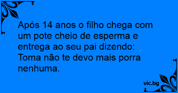 Após 14 anos o filho chega com um pote cheio de esperma e entrega ao seu pai dizendo: