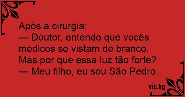 — Doutor, entendo que vocês médicos se vistam de branco. Mas por que essa luz tão forte?