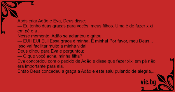 Deus olhou para Eva e perguntou: