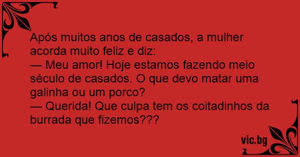 — Meu amor! Hoje estamos fazendo meio século de casados. O que devo matar uma gаlinhа ou um роrсо?
