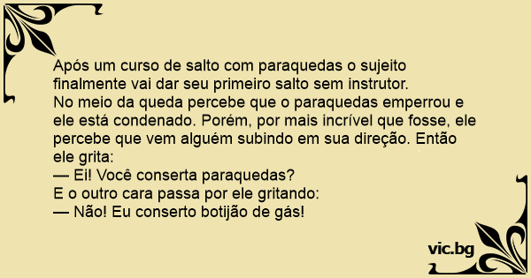 Após um curso de salto com paraquedas o sujeito finalmente vai dar seu primeiro salto sem instrutor.