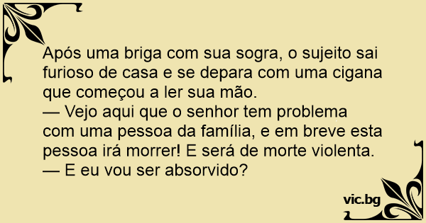 Após uma briga com sua sogra, o sujeito sai furioso de casa e se depara com uma cigana que começou a ler sua mão.
