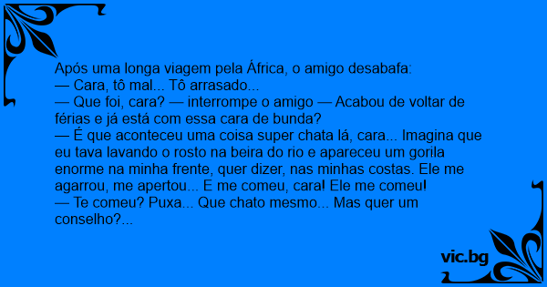 Após uma longa viagem pela África, o amigo desabafa: