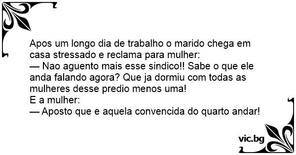 Apos um longo dia de trabalho o marido chega em casa stressado e reclama para mulher: