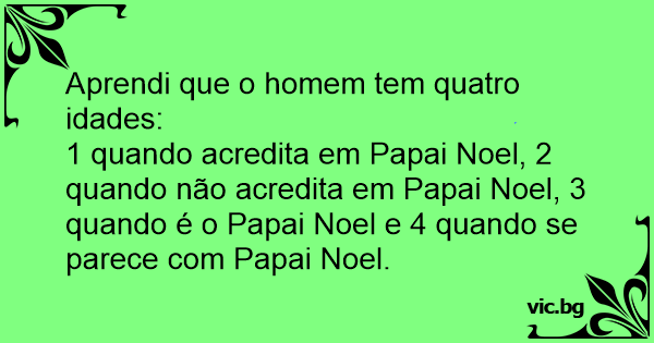 Il y a quatre âges dans la vie de l'homme : - celui où il croit au Père Noël ; - celui où il ne croit plus au Père Noël ; - celui où il est le Père Noël ; - celui où il ressemble au Père Noël.