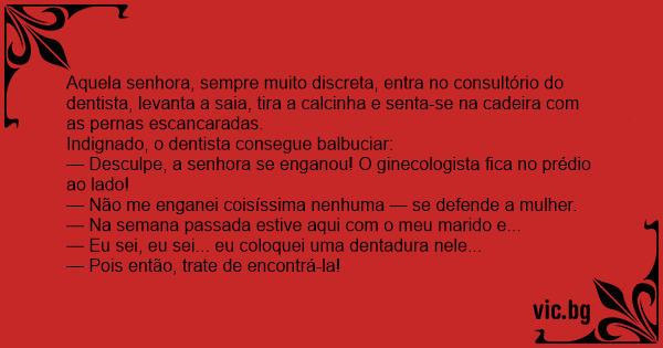 — Desculpe, a senhora se enganou! O ginecologista fiса no prédio ao lado!