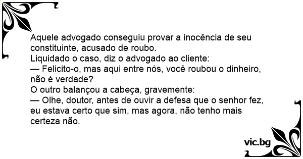— Olhe, doutor, antes de ouvir a defesa que o senhor fez, eu estava certo que sim, mas agora, não tenho mais certeza não.