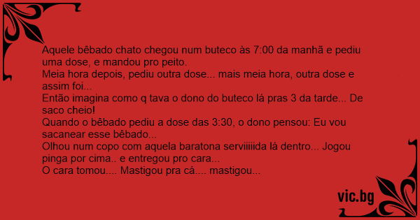 Quando o bêbado pediu a dose das 3:30, o dono pensou: Eu vou sacanear esse bêbado...
