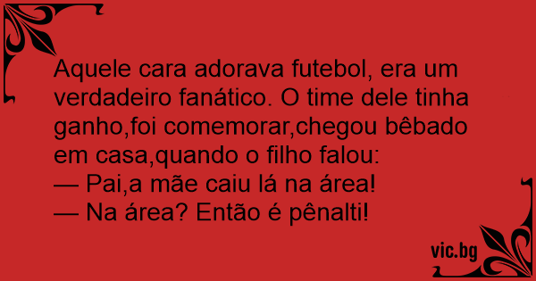 Aquele cara adorava futebol, era um verdadeiro fanático. O time dele tinha ganho,foi comemorar,chegou bêbado em casa,quando o filho falou:
