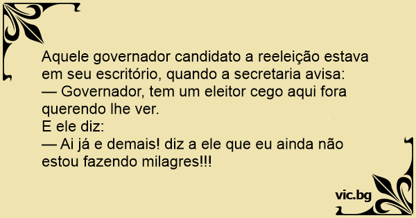 — Governador, tem um eleitor cego aqui fora querendo lhe ver.