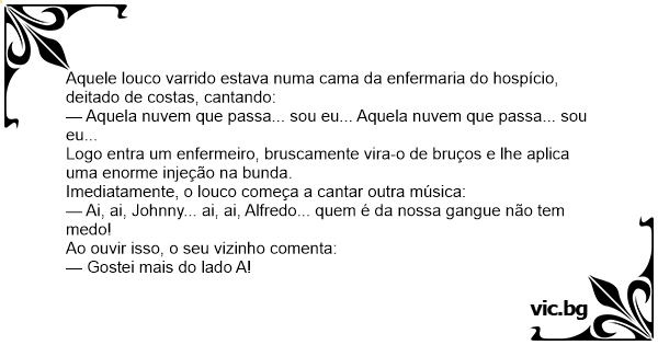 Aquele louco varrido estava numa cama da enfermaria do hospício, deitado de costas, cantando: