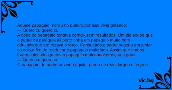Aquele papagaio morou no puteiro,por isso vivia gritando: