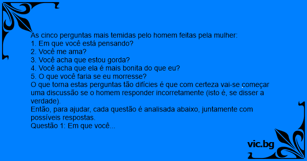 As cinco perguntas mais temidas pelo homem feitas pela mulher: