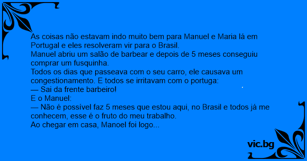 Manuel abriu um salão de barbear e depois de 5 meses conseguiu comprar um fusquinha.