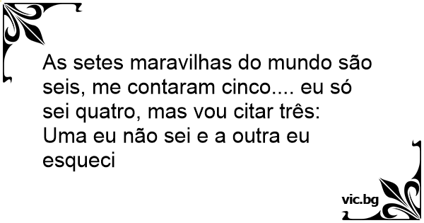 As setes maravilhas do mundo são seis, me contaram cinco.... eu só sei quatro, mas vou citar três: