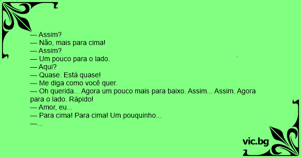 — Oh querida... Agora um pouco mais para baixo. Assim... Assim. Agora para o lado. Rápido!