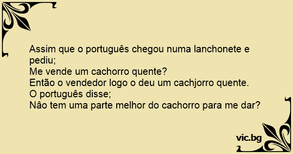 Assim que o português chegou numa lanchonete e pediu;