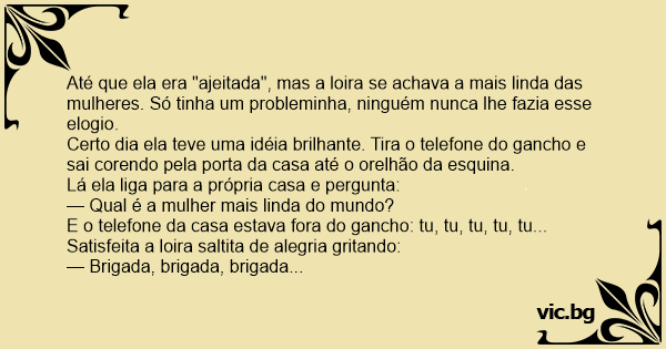 Até que ela era "ajeitada", mas a loira se achava a mais linda das mulheres. Só tinha um probleminha, ninguém nunca lhe fazia esse elogio.