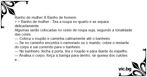 > > Banho de mulher - Tira a roupa no quarto e as separa delicadamente.