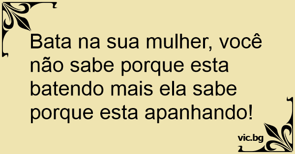 Bata na sua mulher, você não sabe porque esta batendo mais ela sabe porque esta apanhando!