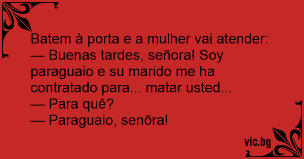 — Buenas tardes, señora! Soy paraguaio e su marido me ha contratado para... matar usted...