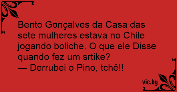 Bento Gonçalves da Casa das sete mulheres estava no Chile jogando boliche. O que ele Disse quando fez um srtike?
