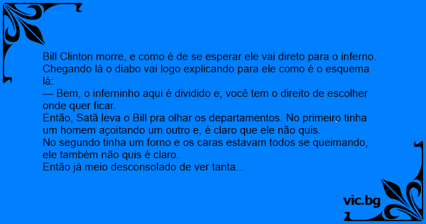 Bill Clinton morre, e como é de se esperar ele vai direto para o inferno.