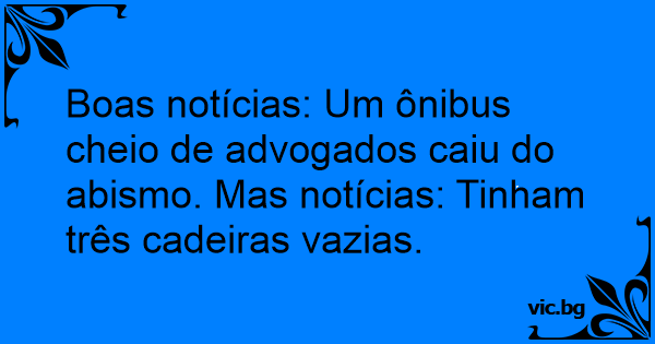 Boas notícias: Um ônibus cheio de advogados caiu do abismo. Mas notícias: Tinham três cadeiras vazias.