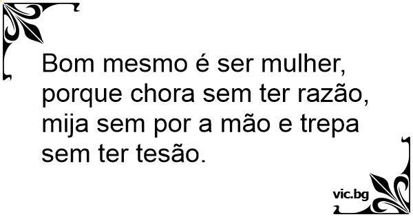 Bom mesmo é ser mulher, porque chora sem ter razão, mija sem por a mão e trepa sem ter tesão.