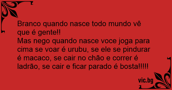 Branco quando nasce todo mundo vê que é gente!!