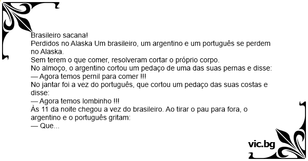 Perdidos no Alaska Um brasileiro, um argentino e um português se perdem no Alaska.